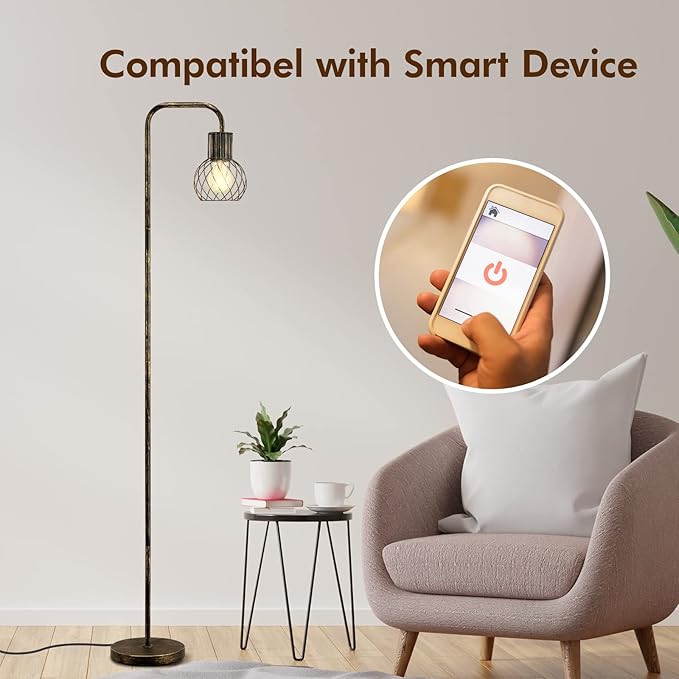 Industrial Floor Lamp, Antique Bronze Standing Lamp Modern with 6W LED Bulb, Foot Switch, Metal Tall Lamps for Living Room, Bedroom, Office, Vintage Stand Up Lamp, Minimalist Farmhouse Floor Lamp