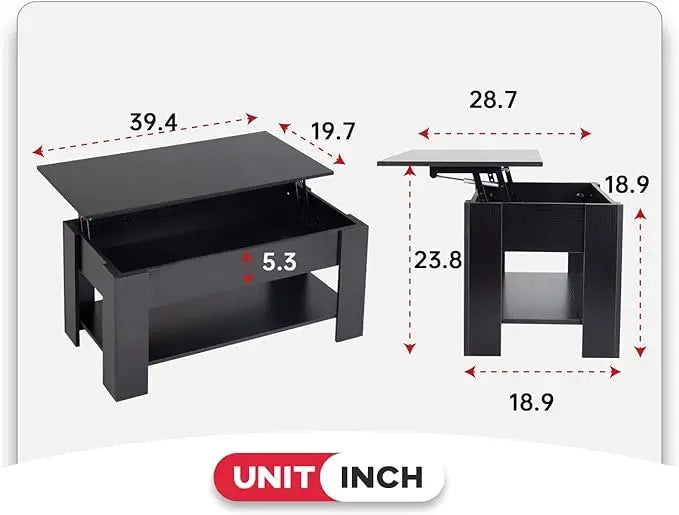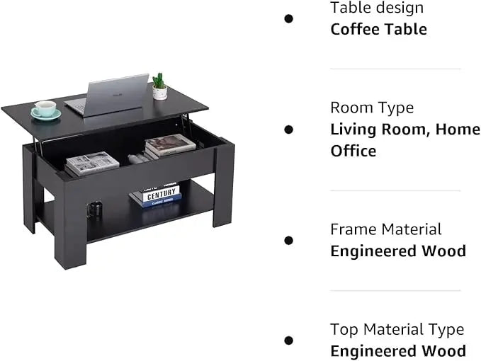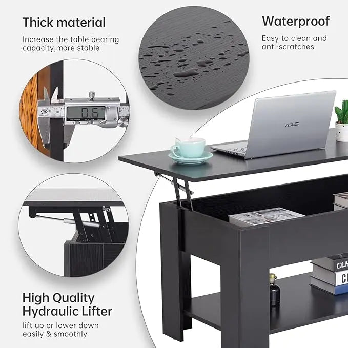 FDW Lift Top Coffee Table with Hidden Compartment and Storage Shelf Wooden Lift Tabletop for Home Living Room Reception Room Office (Black)
