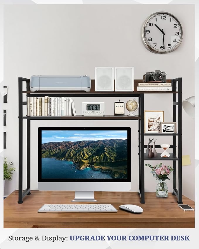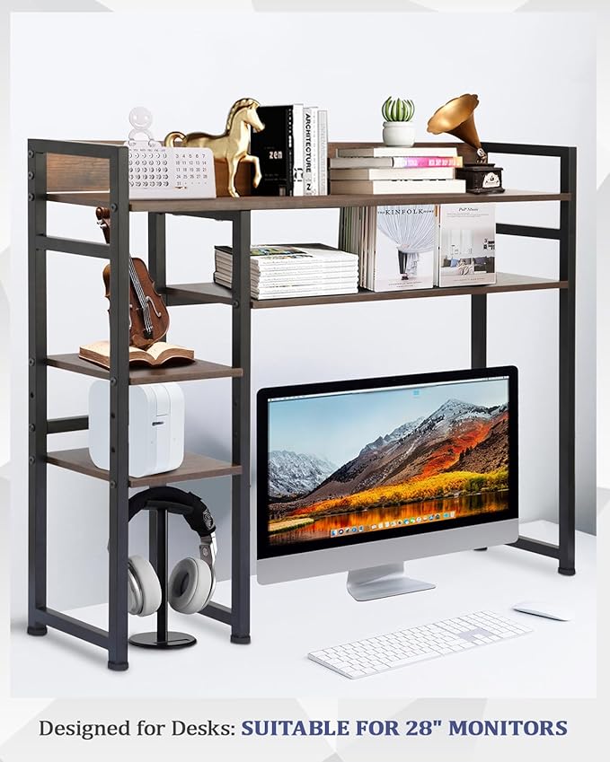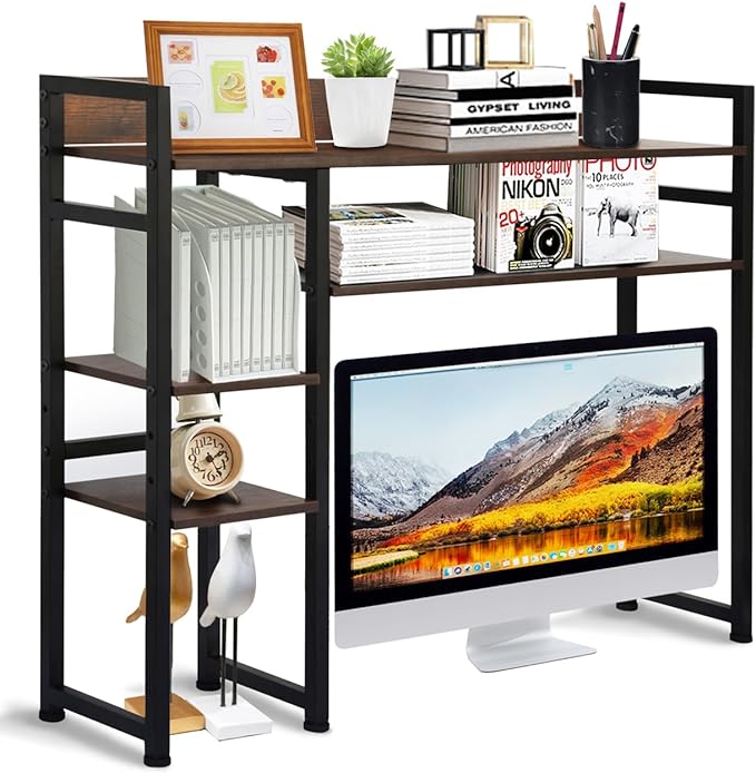 Desktop Bookshelf, 2-Tier Multipurpose Wood Bookcase for Computer Desk, Countertop Storage Hutch Display Rack Organizer for Dorm Office Home - Brown