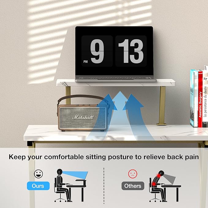 Mr IRONSTONE 63" L Shaped Gaming Desk, Corner Computer Desk, Home Office Writing Desk with Sturdy Monitor Shelf, Spacious L Shaped Desk Workstation, Easy to Assemble, Laminate Marble