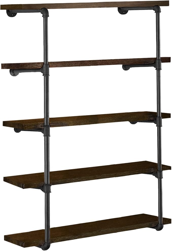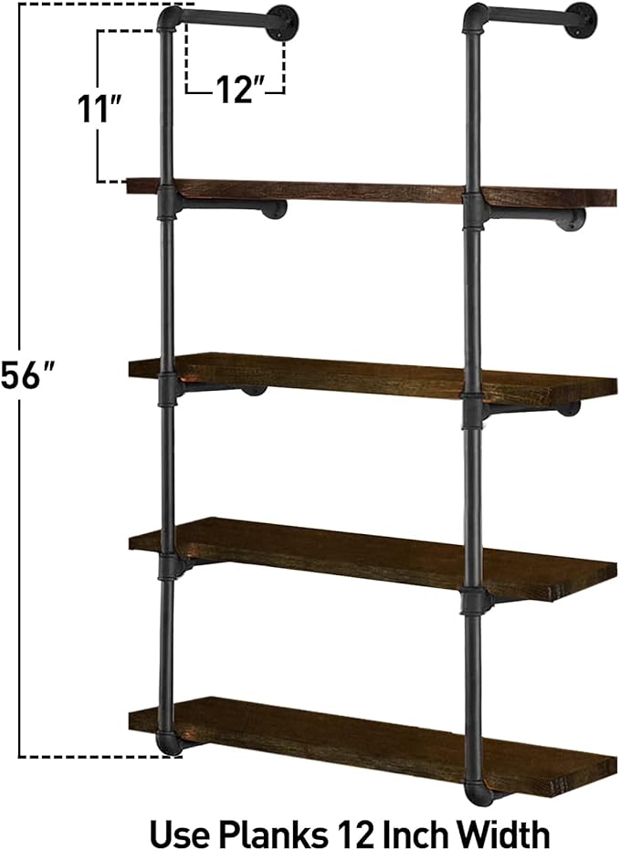 HITOMEN Industrial Iron Pipe Shelves, 2 Set 5-Tier, 56" Tall, 12" Depth, DIY Open Bookshelf Bookcase, Wall Mounted Vintage Retro Shelving, Rustic Farmhouse Pantry Kitchen Storage, Black Shelf Brackets