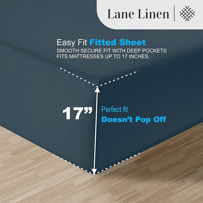 LANE LINEN 100% Egyptian Cotton Bed Sheets - 1000 Thread Count 3-Piece Twin XL Set Long Staple Bedding Sateen Weave Luxury Hotel Fits Upto 16" Mattress Dark Denim