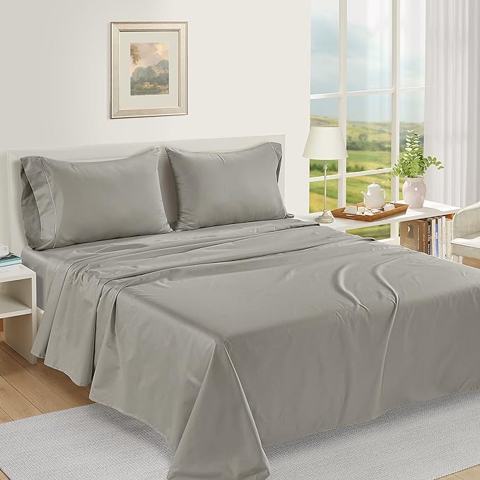LANE LINEN 100% Egyptian Cotton Bed Sheets - 1000 Thread Count 3-Piece Twin Set Long Staple Bedding Sateen Weave Luxury Hotel Fits Upto 16" Mattress Silver