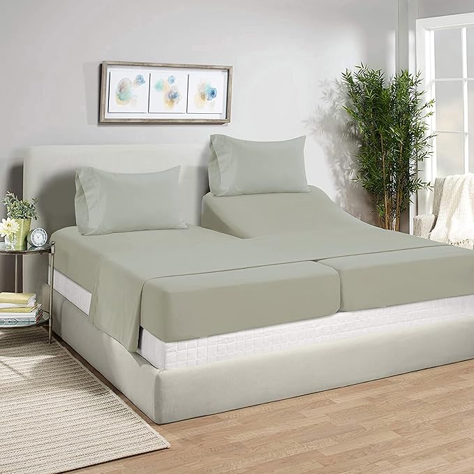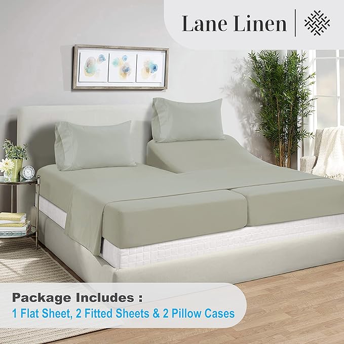 LANE LINEN Split King Sheets for Adjustable Beds - 1000 Thread Count 5 Piece Set 100% Egyptian Cotton Sateen Weave Cool Breathable & Soft 2 Fitted Fits Upto 17" Deep Pockets Mineral