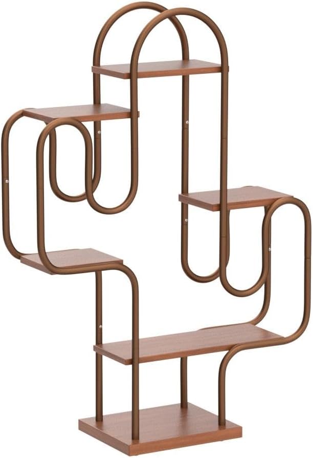 Allinside Cactus Corner Bookshelf, 6 Tiers Multipurpose Plant Stand, Heavy-Duty Metal Corner Shelf, Creative Tall Display Rack, Rustic Bookcase for Living Room, Bedroom, Home Office and Balcony