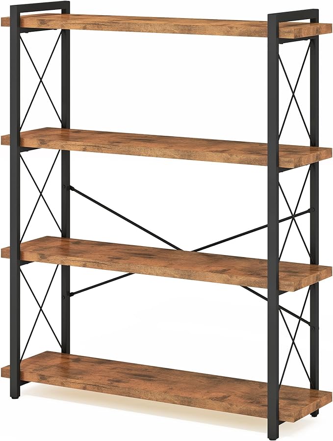 HCHQHS Bookshelf, 4-Tier Industrial Bookcase, Rustic Open Book Shelf, Freestanding Tall Bookshelves with Metal Frame