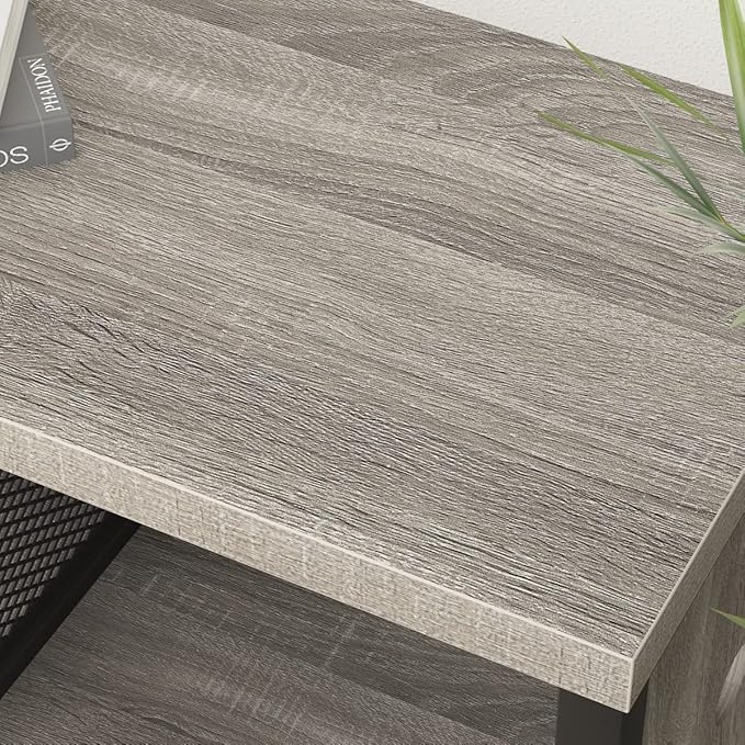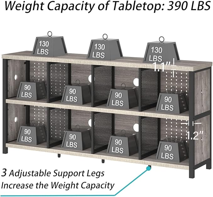 LVB Industrial 4 5 6 7 8 Cube Bookcase, Rustic Wood Metal Horizontal Bookshelf, Modern Wide Cube Organizer Storage Shelf, Large Long Low Book Shelf for Office Bedroom Living Room, Light Grey Oak 63 In