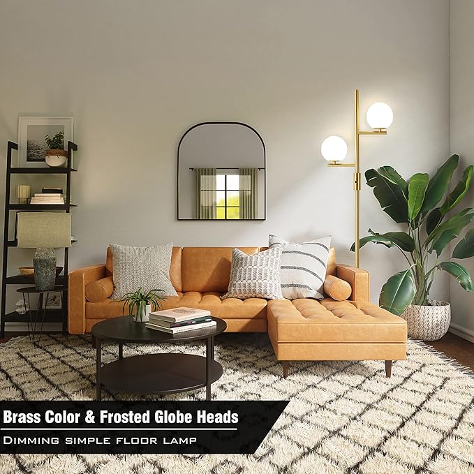Dimming Floor Lamp with 2 Sphere Frosted Glass Globes,Mid-Century Gold Standing Lamp for Living Room, Bedroom, Office(Gold)