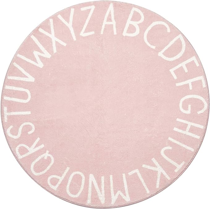 Topotdor Round Kids Play Rug Alphabet Nursery Area Rug Extra Large Soft Crawling Play Mat for Children Toddlers Bedroom (71 inch, Pink)