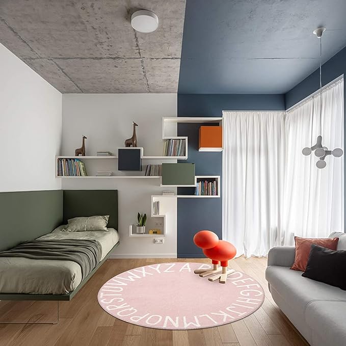 About This PERFECT SIZE:71 inches in diameter and 0.4 inches thick.Material:cotton and polyester ULTRA-SOFT: This superior alphabet rug is made...