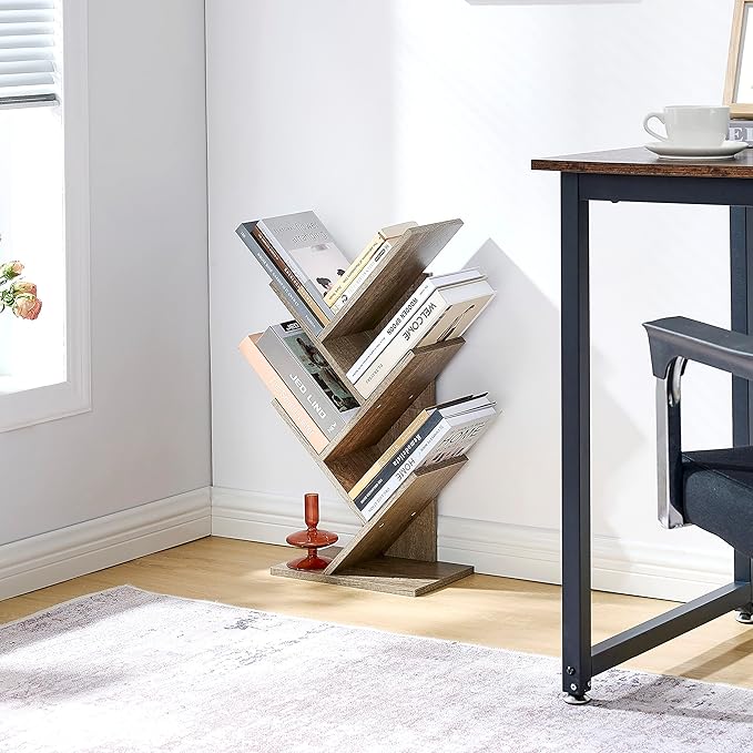 About This 【Multifunctional & Multi-Scene】The rustic tree bookcase is an old-time classic with a charming vintage look and functional design....