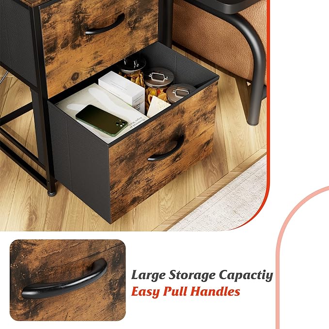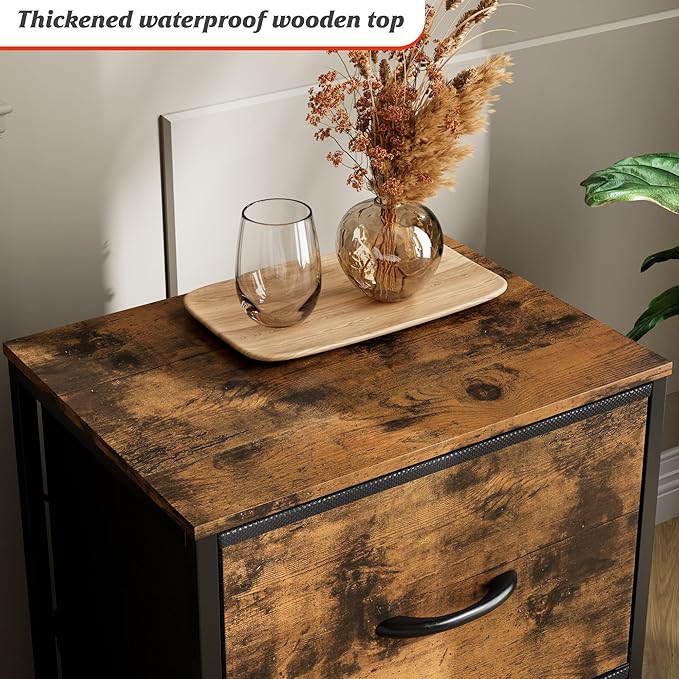 Nicehill Nightstand, Nightstand for Bedroom with Drawers, Small Dresser with Drawers, Bedside Table Bedside Furniture, Night Stand End Table with Storage Drawers for Bedroom, Rustic Brown