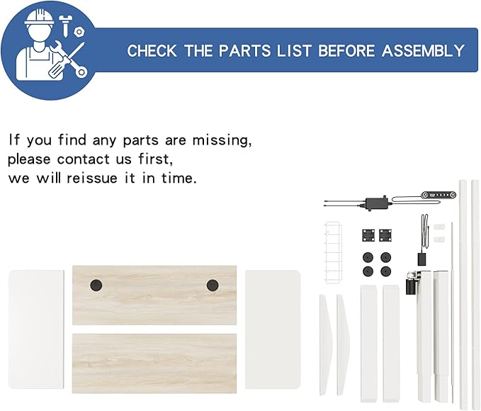Adjustable Height Electric Standing Desk - 63 x 30 Inch Sit Stand Computer Desk with Splice Board, Stand Up Desk Table for Home Office, White Frame/White and Oak Top