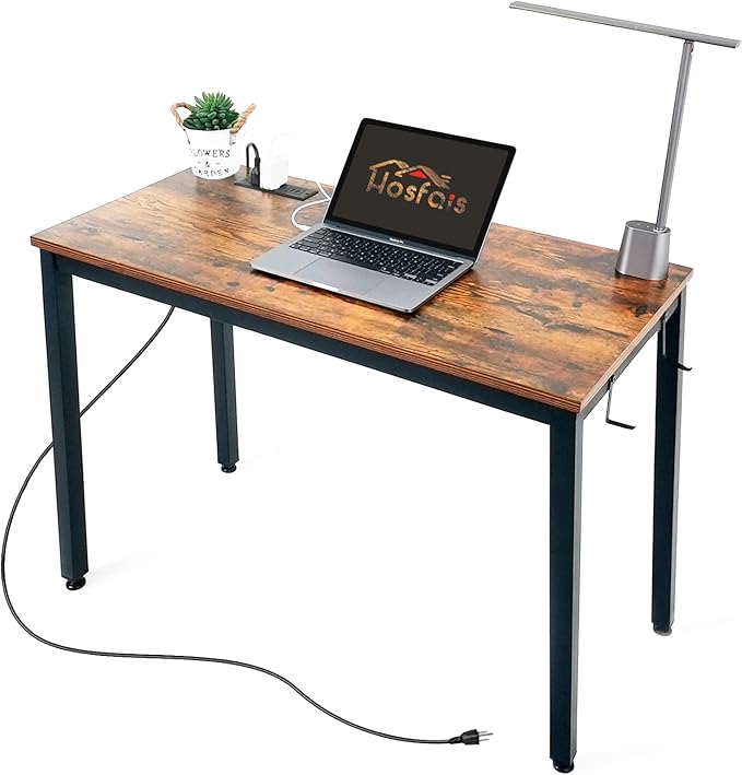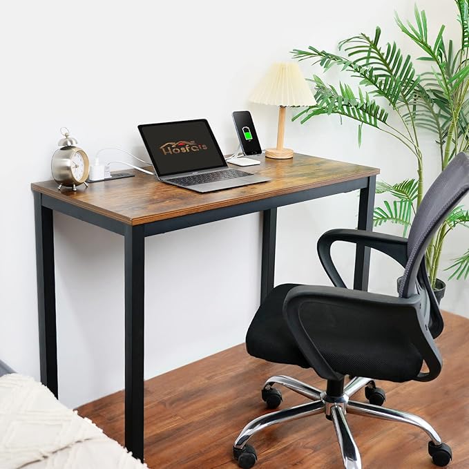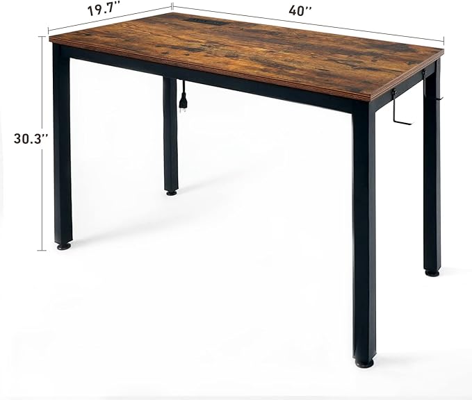 Computer Desk 40" with Power Strip, Office Writing Study, Small Computer Desks Easy Assembly Stable Metal Frame, Desk for Home Office Small Space Workbench Workstation, Rustic Brown