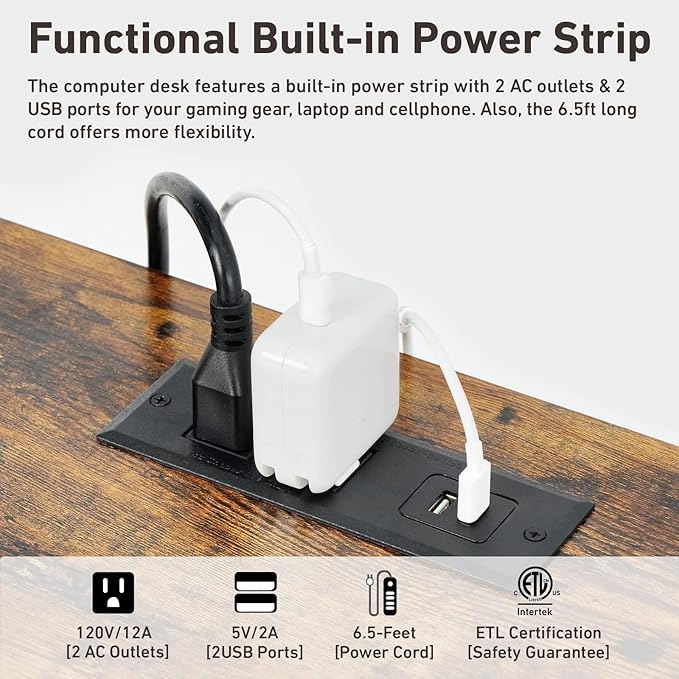 About This 【Functional Built-in Power Strip】 The Hosfais computer desk features a built-in power strip with 2 AC outlets &...