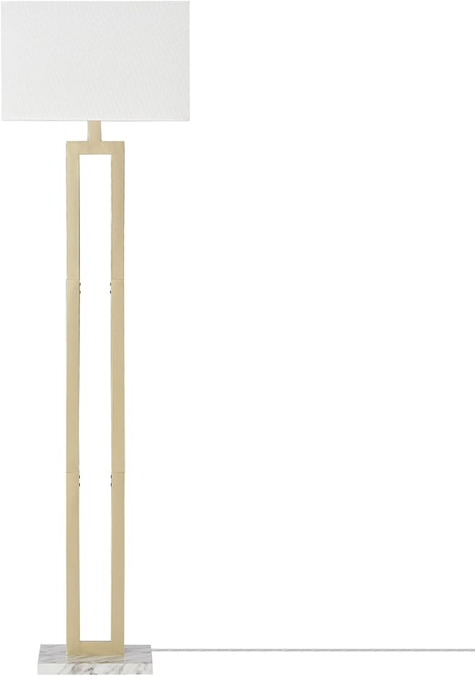 Globe Electric 12273 D'Alessio 58" Floor Lamp, Gold, White Linen Shade, Faux Marble Base, On/Off Socket Rotary Switch, Title 20 LED Bulb Included