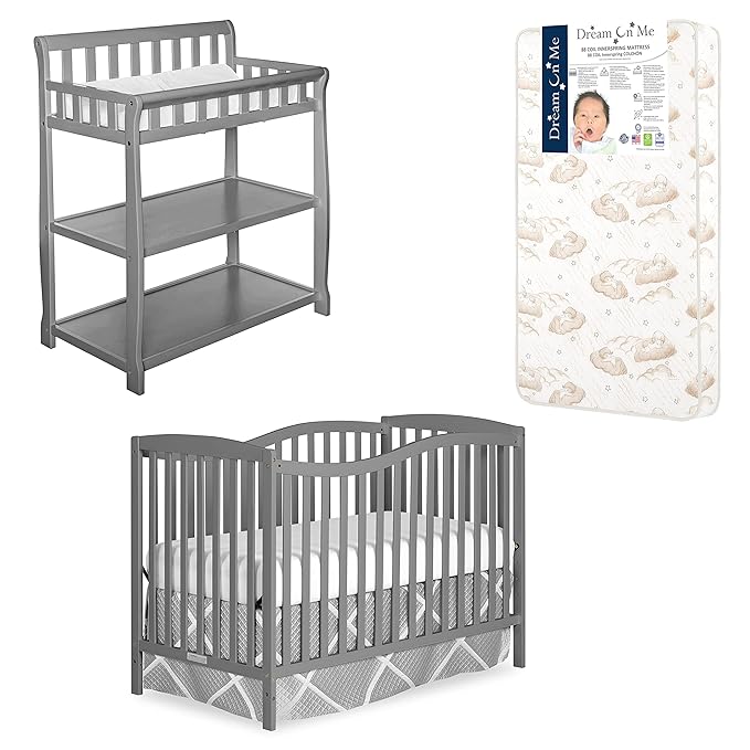 Nursery Essentials Bundle of Dream On Me Chelsea 5-in-1 Convertible Crib, Dream On Me Ashton Changing-table, with a Dream On Me Twilight 5” 88 Coil Inner Spring Crib and Toddler Mattress