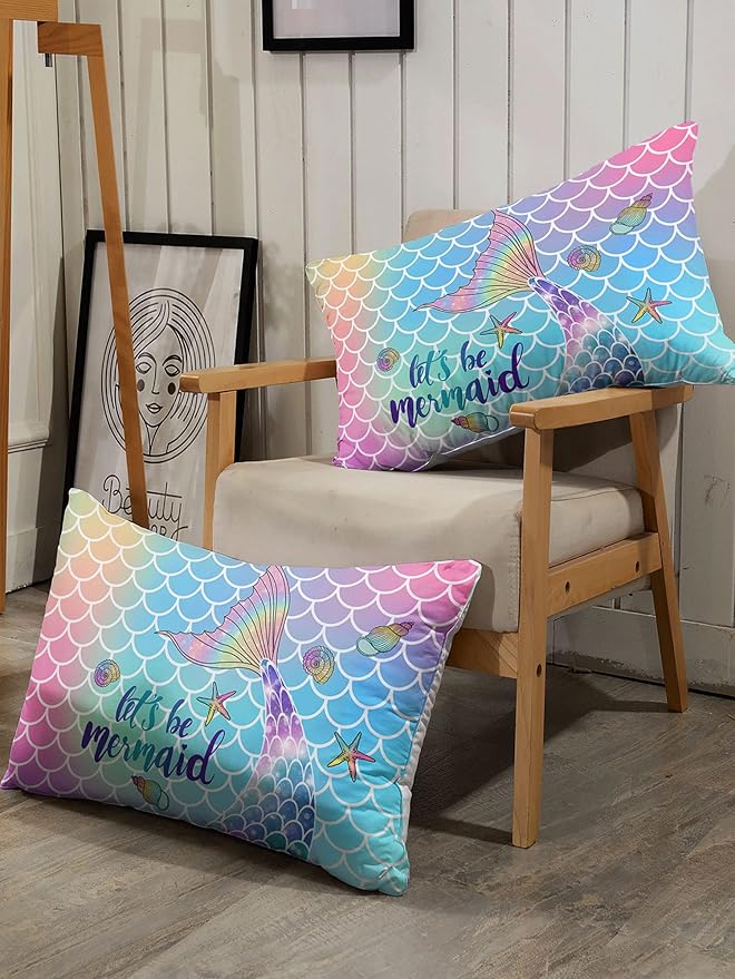 Datura home Bedding Comforter Set Rainbow Scales Mermaid Printed Pattern Bedding Set with 1 Comforter and 2 Pillowcases for Girls Bedroom All Season(Rainbow Scales Mermaid Queen), 90x90inches