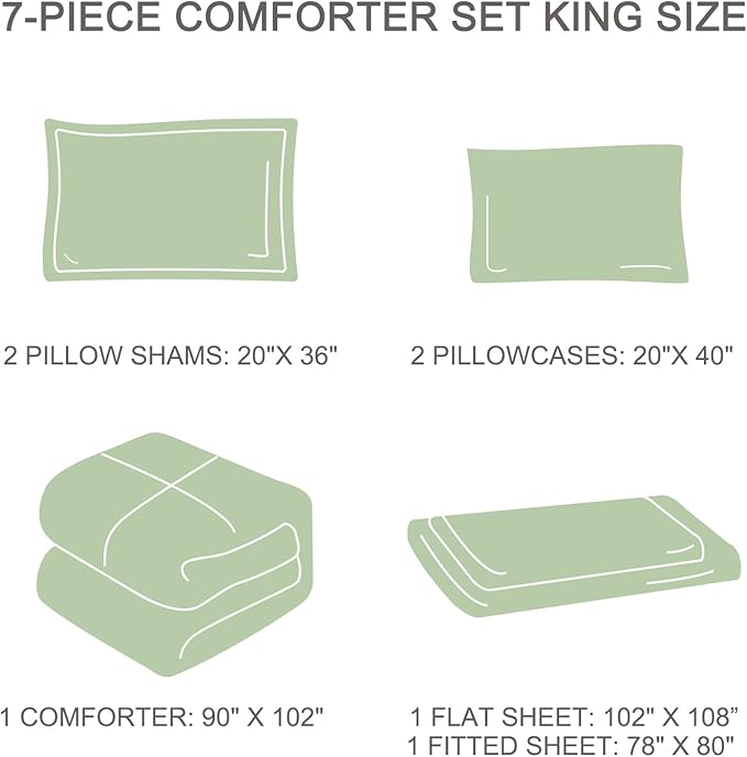 EMME Botanical Sage Green Comforter Set King Size 7 Pieces_Brushed Microfiber Bed in a Bag for Girls, Ultra Soft Bedding Set with Sheets (Sage Green, King (7 Piece), Adult