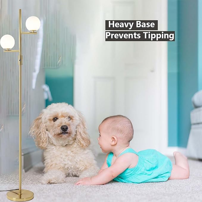 Dimmable Floor Lamp,Modern Floor Lamp,Gold Floor Lamp,Mid-Century Floor Lamps,Frosted Glass Stand Up Lamp for Living Room, Bedroom,Office,Contemporary LED Tall Pole Lamp Indoor