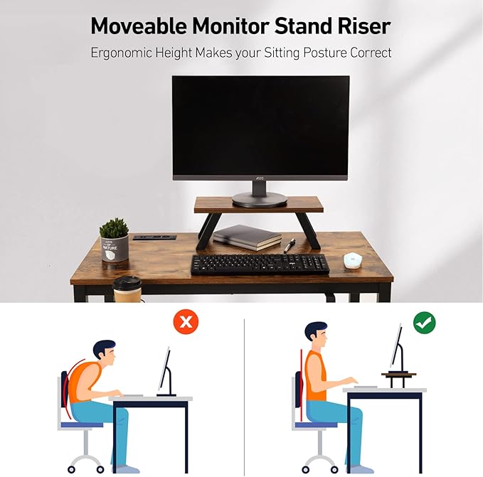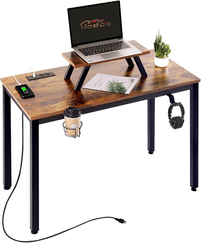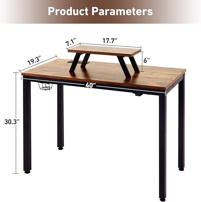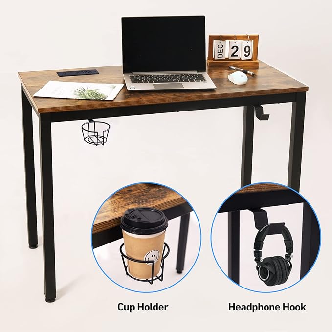 Computer Desk with Power Strip and Monitor Stand, 40" Desk for Home Office Small Space, Small Writing Desk Study Table Workstation with Cup Holder Headphone Hook, Easy Assembly