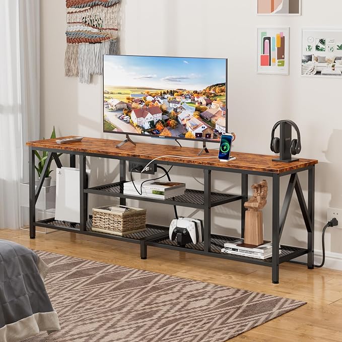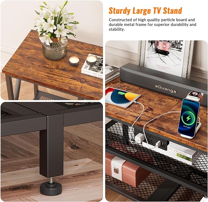 About This TV Unit with Charging Station: The tv entertainment center is equipped with a power strip with 2 Power...