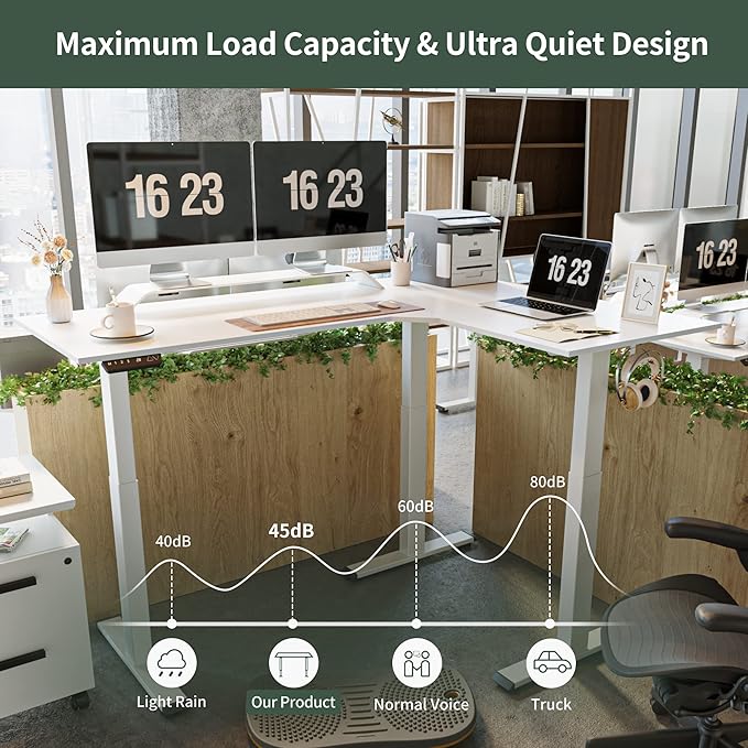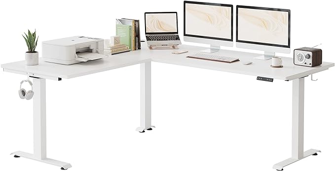 FEZIBO 75 Inches, Supports over 300mlbs,L Shaped Standing Desk Reversible, Electric Height Adjustable Corner Stand up Desk, Sit Stand Desk Computer Workstation, White Frame/White Top
