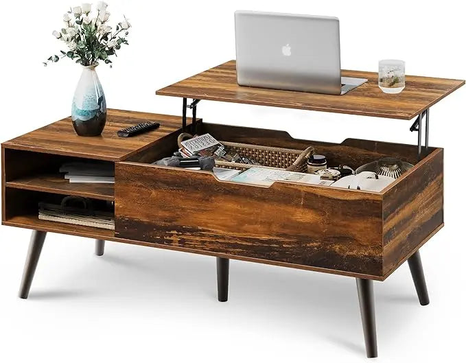 WLIVE Wood Lift Top Coffee Table with Adjustable Storage Shelf and Hidden Compartment, Lift Tabletop Dining Table for Living Room and Office, Rustic Oak