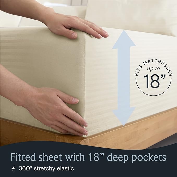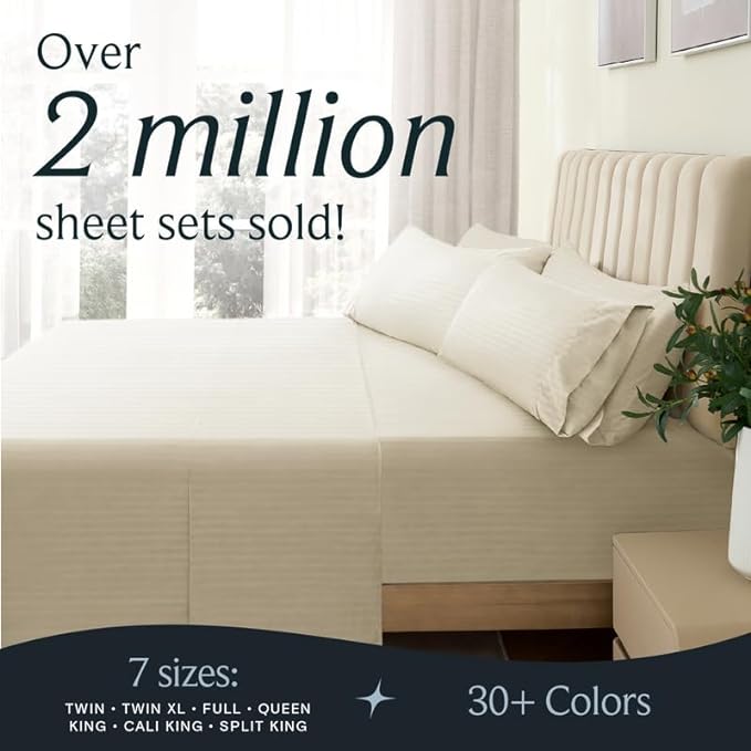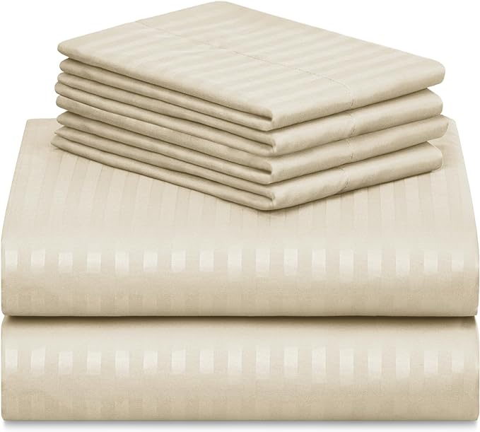 LuxClub 6 PC Full Size Sheet Set Bed Sheets, Breathable Luxury Bed Sheets, Deep Pockets 18" Wrinkle Free Cooling Bed Sheets Machine Washable Hotel Bedding (Full, Striped Cream)