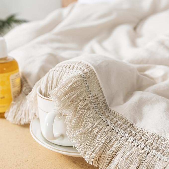 About This Boho Tassel Design: Andency Beige boho fringe comforter set with tassels on the edge gives you a charming...