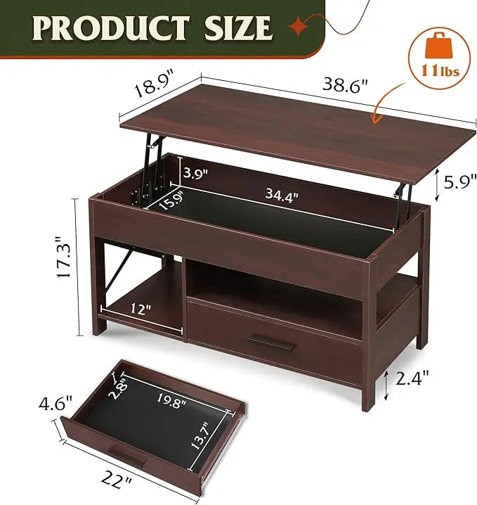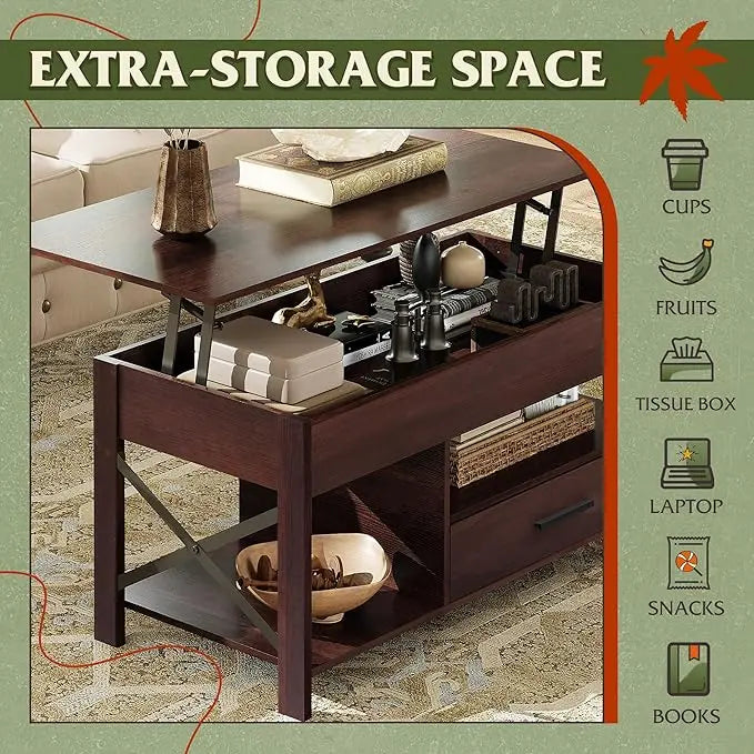 WLIVE Coffee Table, 39" Lift Top Coffee Table with Hidden Compartment and Sorage Drawers for Living Room,Espresso