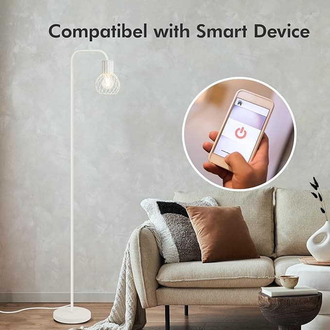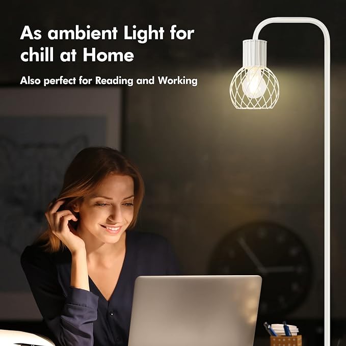 Industrial Floor Lamp, White Standing Lamp Modern with 6W LED Bulb, Foot Switch, Metal Tall Floor Lamps for Living Room, Bedroom, Office, Den, Vintage Stand Up Light, Minimalist Mid Century Pole Lamp