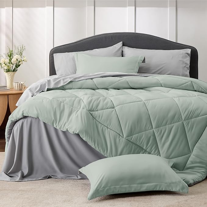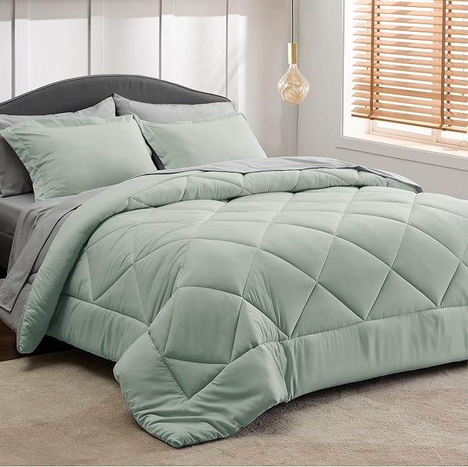Bedsure Sage Green Full Comforter Set - 7 Pieces Reversible Bed Set Sage Green Bed in a Bag Full with Comforters, Sheets, Pillowcases & Shams, Full Bedding Sets