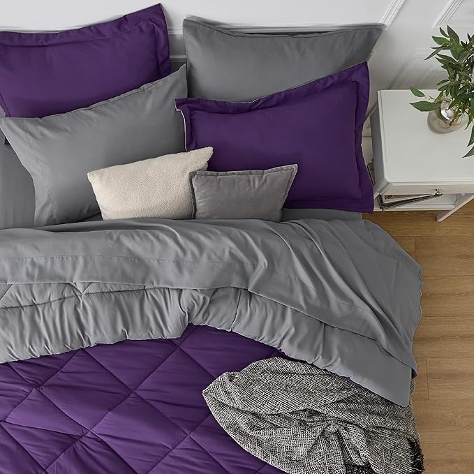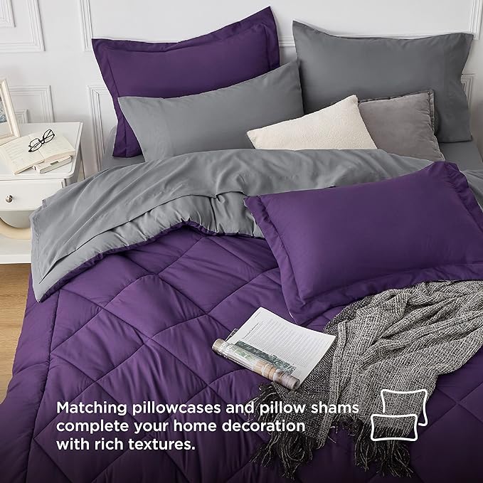 Bedsure Purple Queen Comforter Set - 7 Pieces Reversible Bed Set Bed in a Bag Queen with Comforters, Sheets, Pillowcases & Shams, Queen Bedding Sets