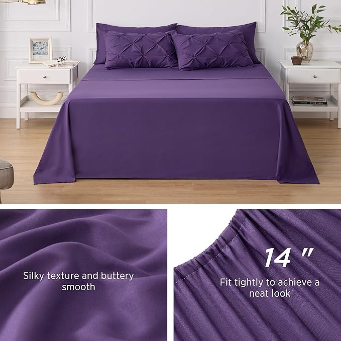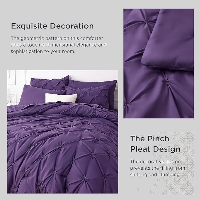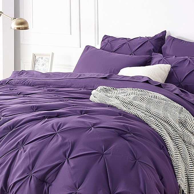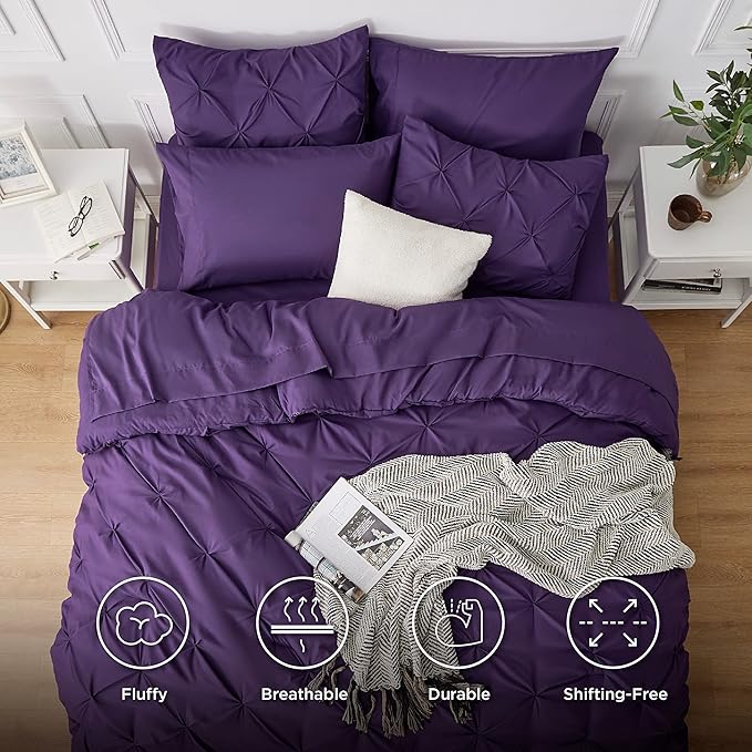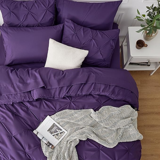 Bedsure King Size Comforter Set - Bedding Set King 7 Pieces, Pintuck Bed in a Bag Purple Bed Set with Comforter, Sheets, Pillowcases & Shams