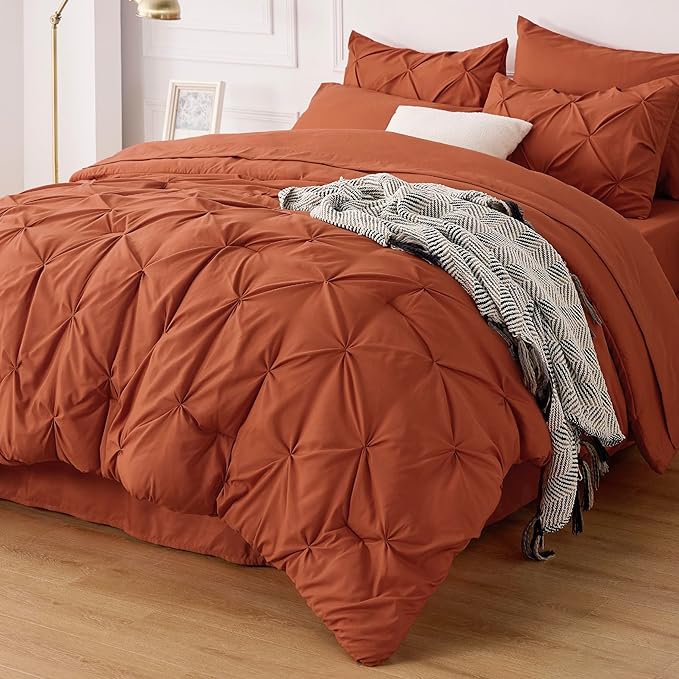 Bedsure Full Size Comforter Sets - Bedding Sets Full 7 Pieces, Bed in a Bag Burnt Orange Bed Sets with Comforter, Sheets, Pillowcases & Shams, Adult & Kids Bedding