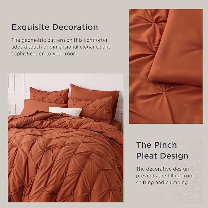 Bedsure Bed in a Bag Queen 7 Pieces - Queen Size Comforter Set, Pintuck Bedding Sets Burnt Orange Bed Set with Comforter, Sheets, Pillowcases & Shams