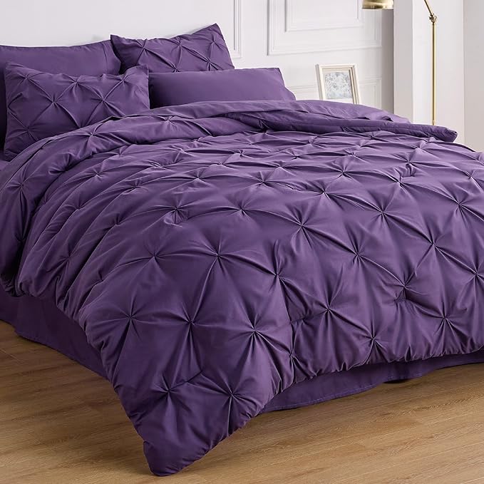 Bedsure Purple Comforter Set Queen - Bed in a Bag Queen 7 Pieces, Pintuck Bedding Sets Purple Bed Set with Comforter, Sheets, Pillowcases & Shams