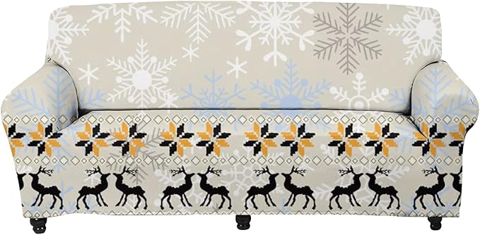 FKELYI Christmas Sofa Cover Slipcover Xmas Theme Reindeer Snowflake Printed Super Soft Stretch Sofa Couch Cushion Cover Durable Furniture Protector-M