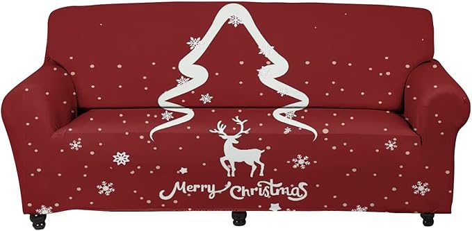 FKELYI Super Stretch Sofa Slipcover Christmas Reindeer Snowflake Printed Sofa Couch Cover Washable Furniture Protector with Elastic Bottom-XL