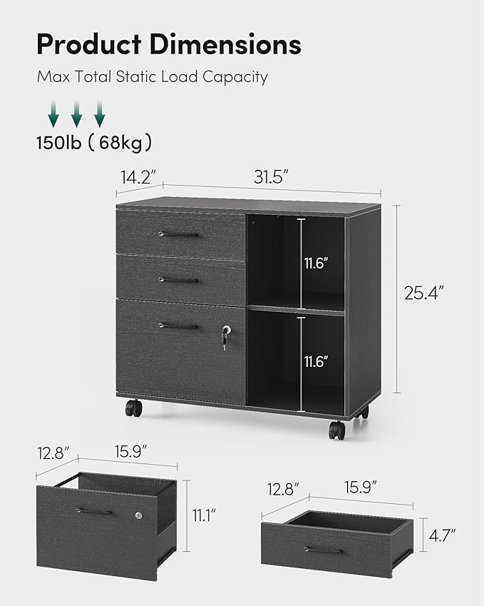 About This Drawer With Lock: Fezibo file cabinet has 3 drawers. The 2 top drawers provide sufficient storage space for...