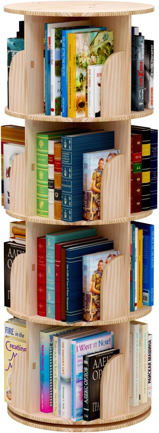 Rotating Bookshelf 360 Degrees, 4 Tier Stackable Solid Wood Bookshelf Organizer, Storage Display Rack Floor Standing Bookcase for Kids&Adults (51"x18"x18")…