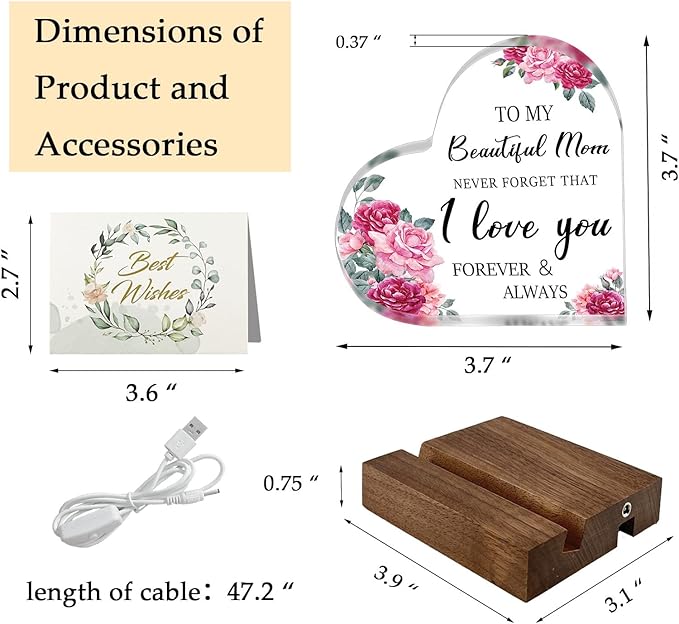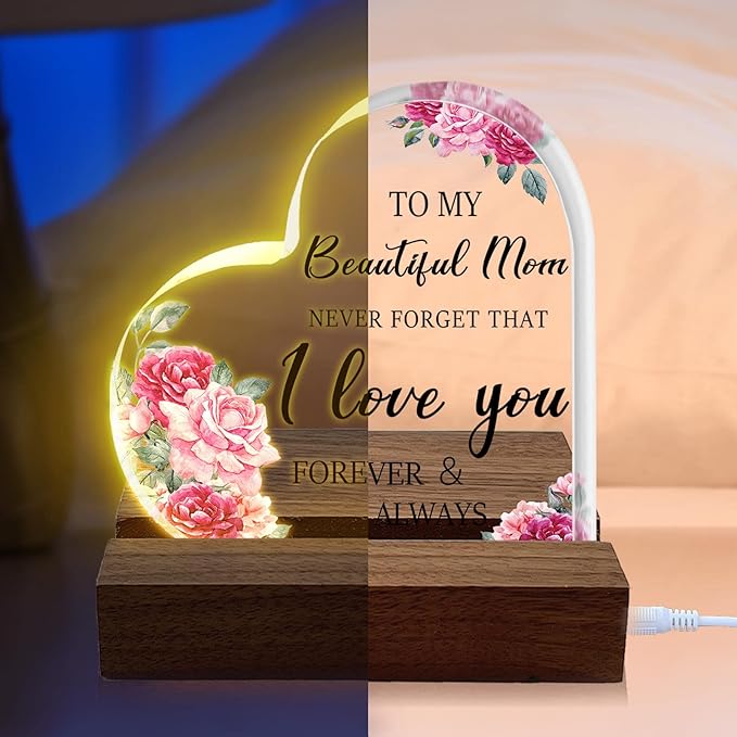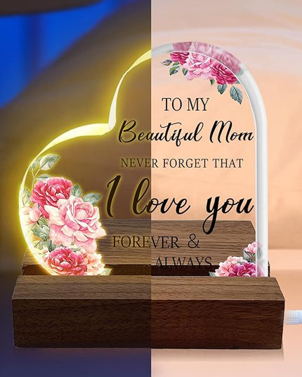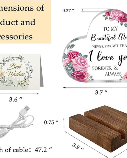 ACSENCETER to My Mom Birthday Gifts for Women I Love You Night Lights for Mother Acrylic Decoration Christmas Gift USB Night Lamp Keepsake Mothers' Day Gift from Daughter Son 3.7"