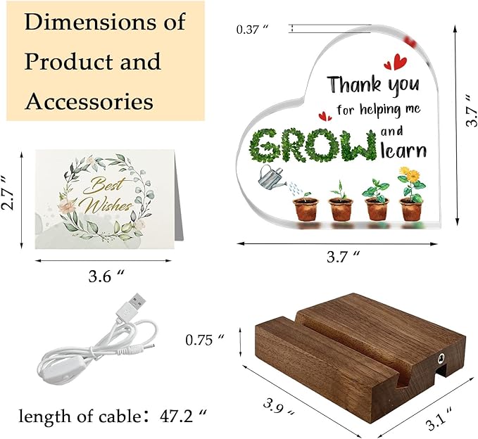 ACSENCETER Teacher Appreciation Gifts for Women Men Thank You for Helping Me Grow Night Lights Clear Acrylic Decoration Christmas Gift USB Night Lamp Keepsake Teachers' Day Gift from Student 3.7"