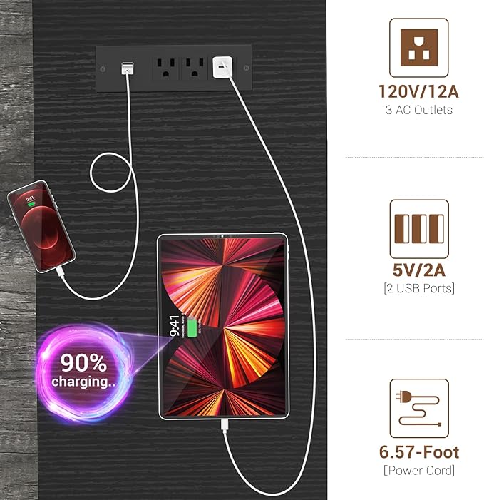 About This Desk with LED Lights & USB Charging Station & Power Outlets - Armocity computer desk comes with 3...