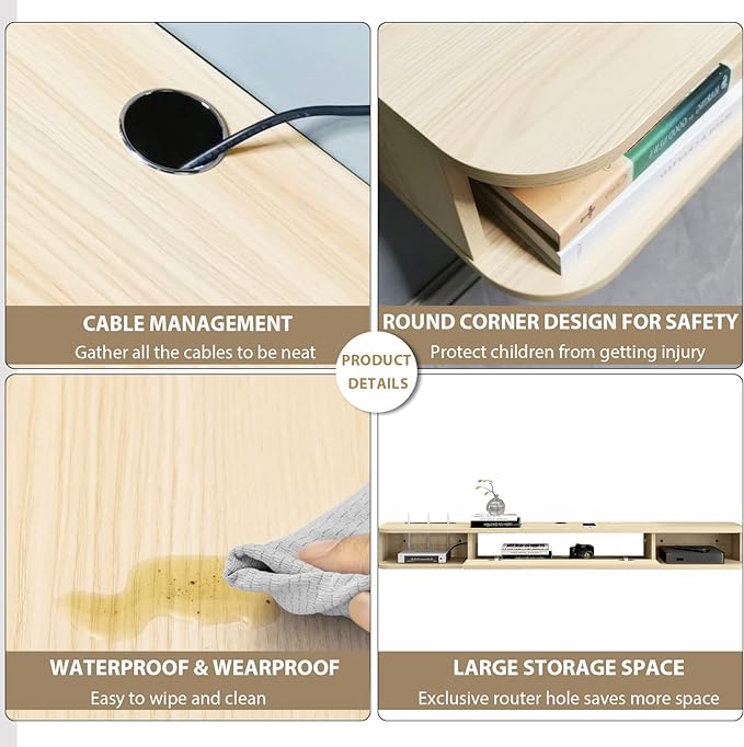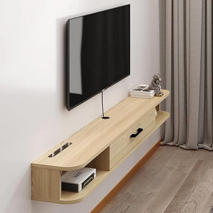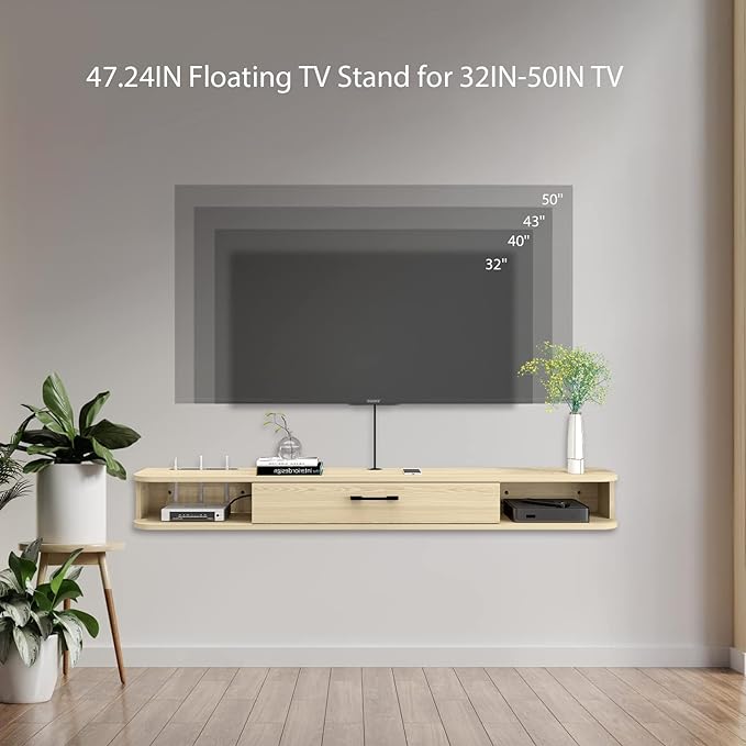 Floating TV Unit, 47'' Wall Mounted TV Cabinet, Floating Shelves with Door, Modern Entertainment Media Console Center Large Storage TV Bench for Living Room & Office (47.24IN, Oak)