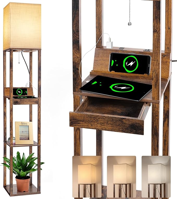 About This 【4-in-1 Upgraded Shelf Floor Lamp】:Our upgraded modern floor lamp has 2 charging ports (USB+Type-C), 2 AC Outlets, one...