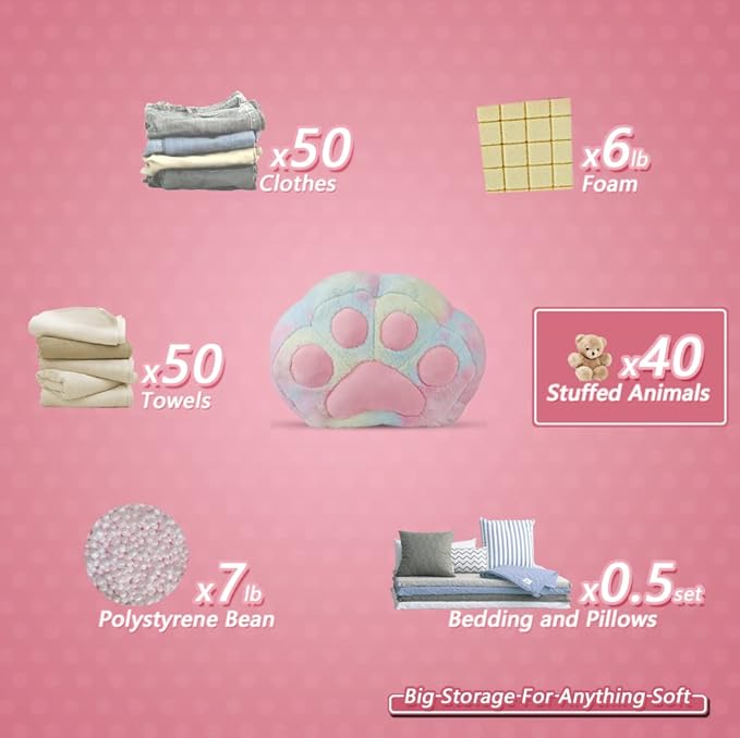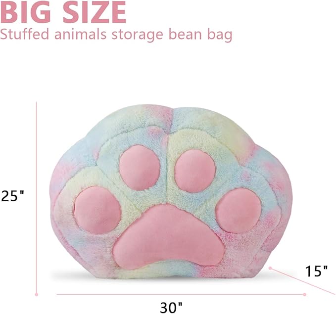 Stuffed Animal Storage Bean Bag Chair Cover for Kids Tie Dye Cat's Paw Bean Bag Cushion for Girls Large Size Toy Organizer Cover Only Without Filling
