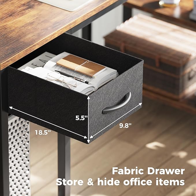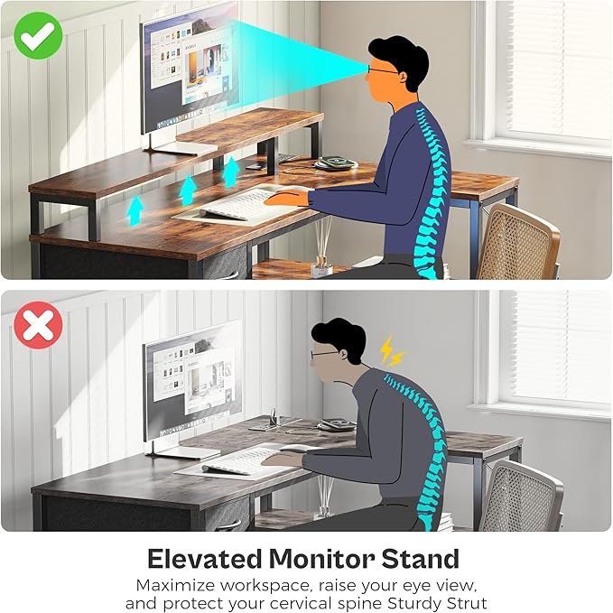 SUPERJARE 47 inch Reversible L Shaped Desk with LED Lights & Power Outlets, Computer Desk with Shelves & Monitor Stand, Gaming Desk with Drawer, Home Office Desk Corner Desk, Rustic Brown