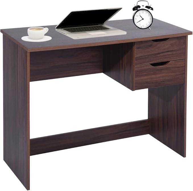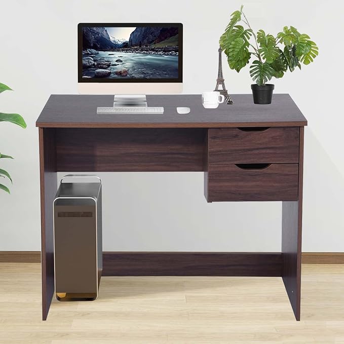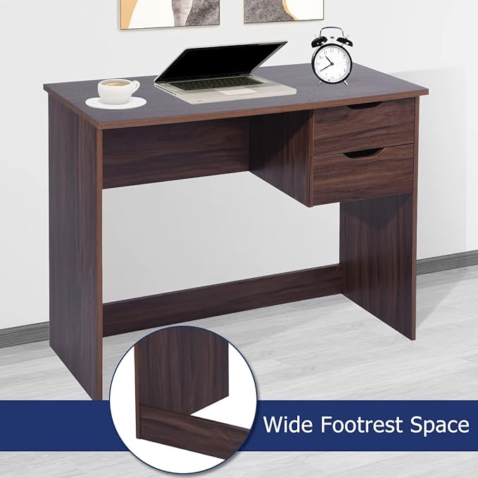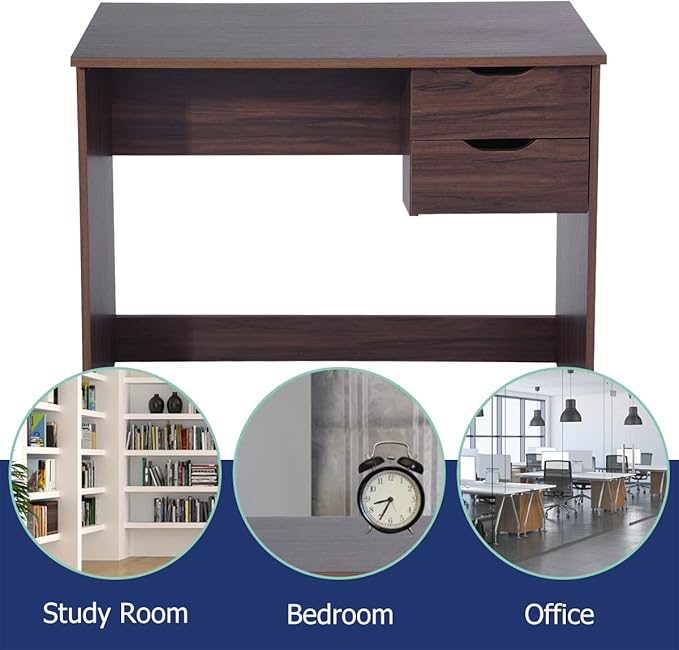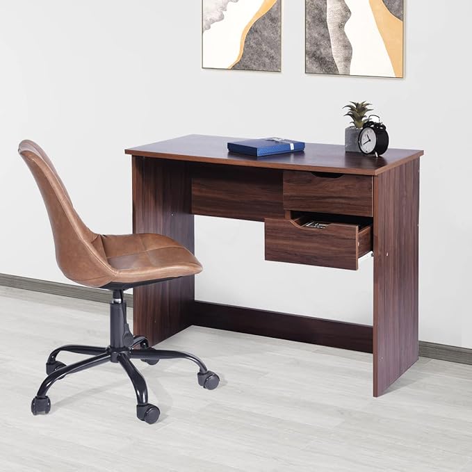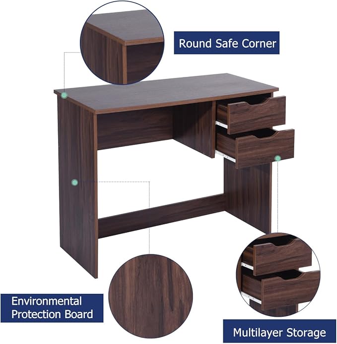 Home Office Computer Desk, 35.4" Small Study Writing Table, with Storage Drawers, Modern Teen Student Adult PC Table Desk, Walnut